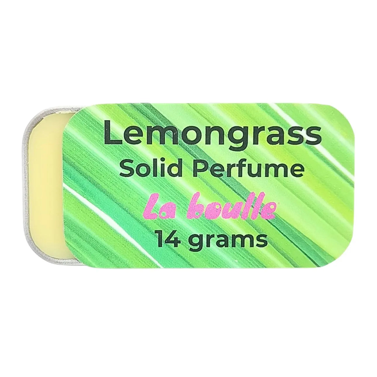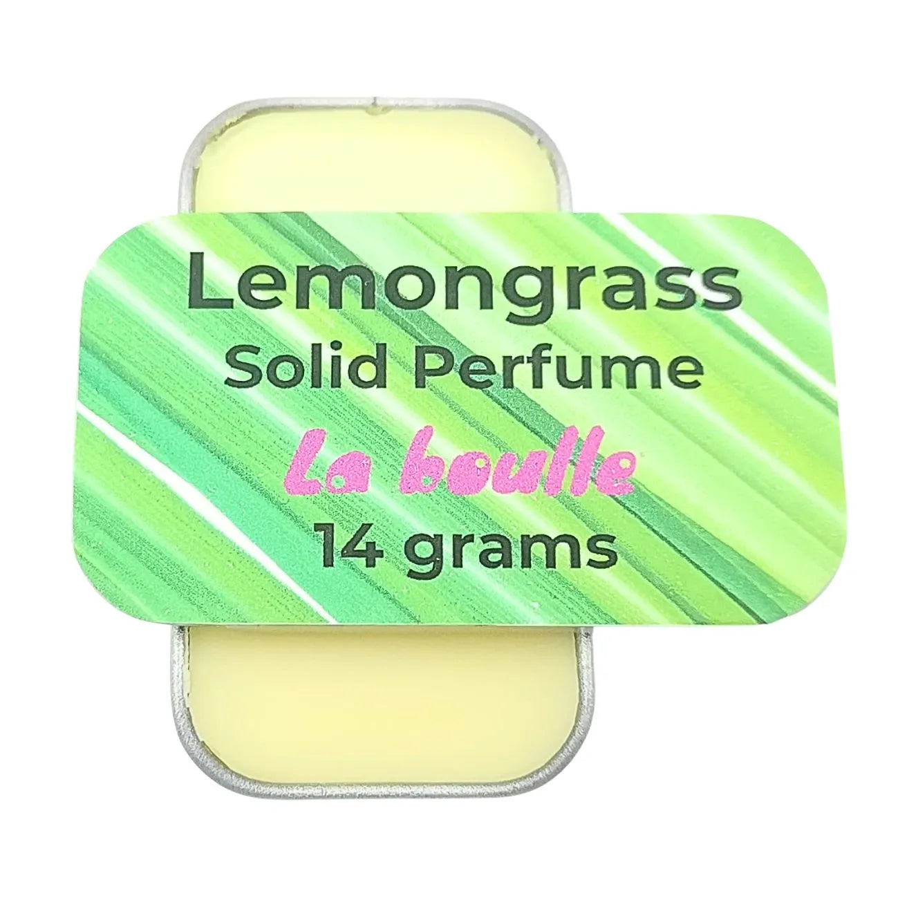 Lemongrass solid natural perfume balm, La Boulle, on a white background