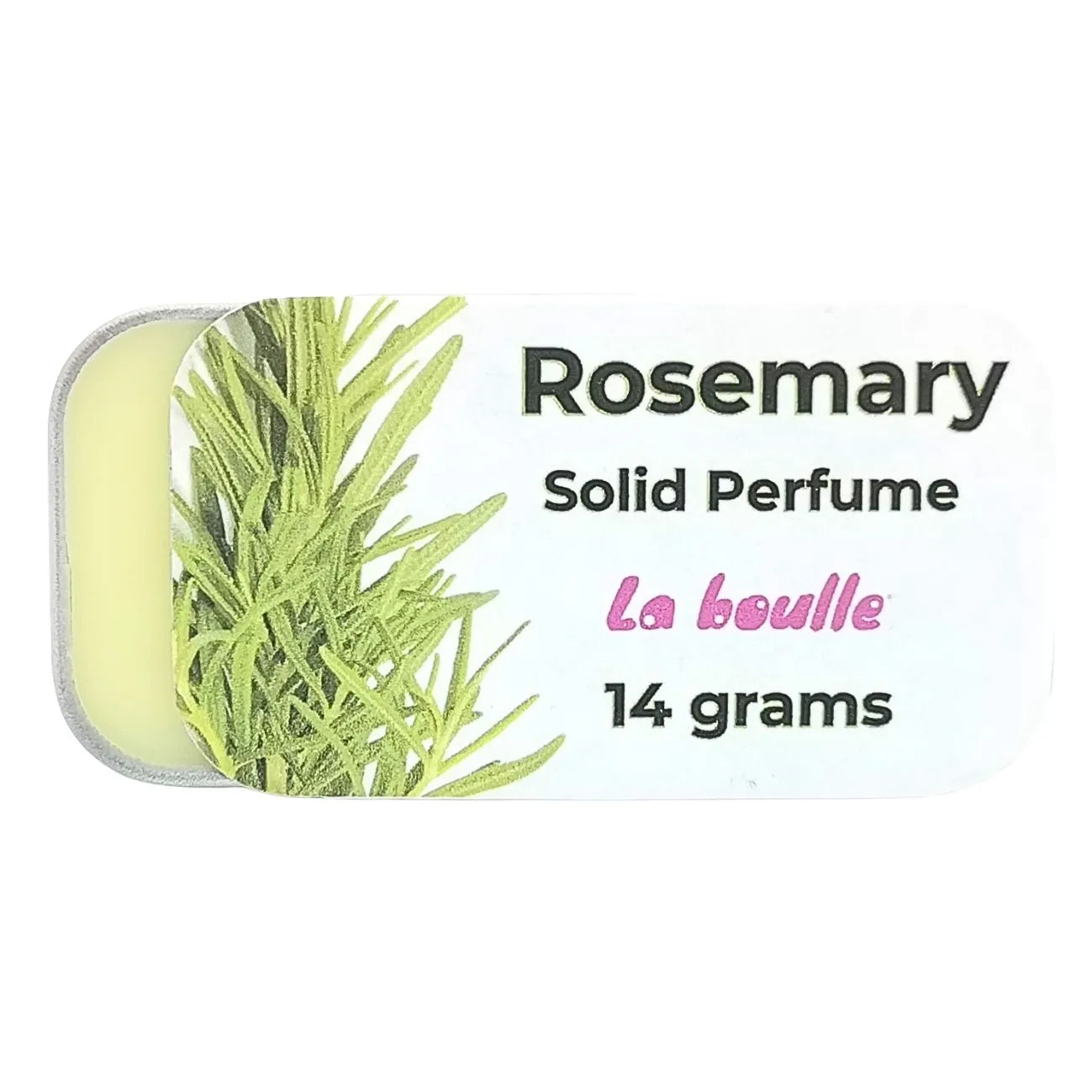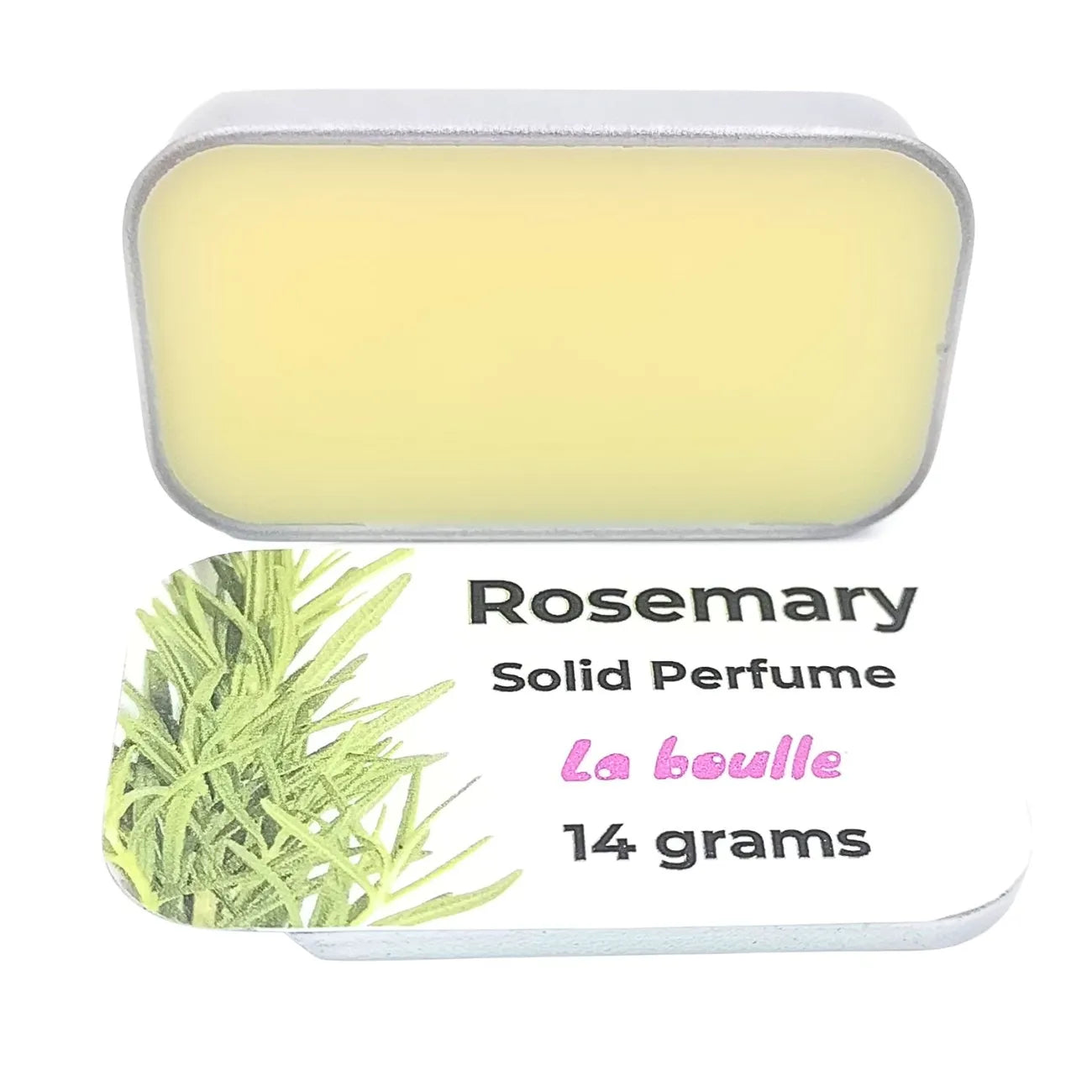 Rosemary solid natural perfume balm, La Boulle, on a white background