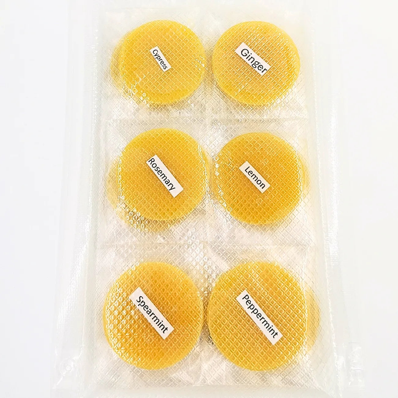 Place one beeswax disc in the dish of your wax burner. As the wax gently warms, the natural essential oils are slowly released into the air, creating a clear and refreshing atmosphere.